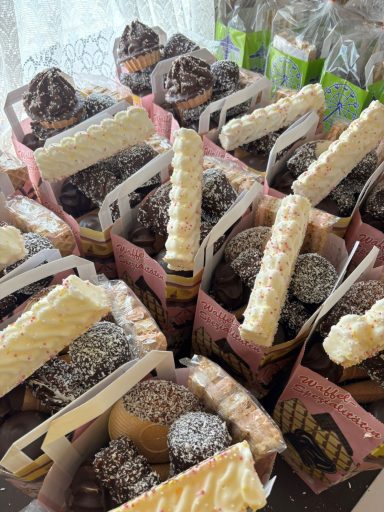 Ergänzt wird unser Angebot durch unsere selbstgemachten Kokosflocken nach traditionellem Familienrezept.